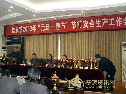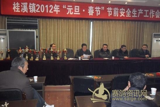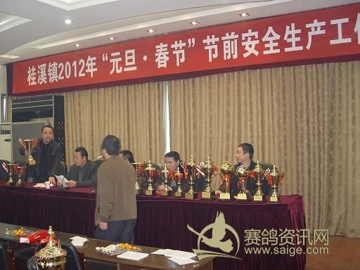 会议由副主席——李行权主持,主席——刘天成作2011年竞翔工作总结、财务公布、2012年竞翔安排意见。裁判长——卢建文向2011年优胜鸽友颁发奖杯、奖金……