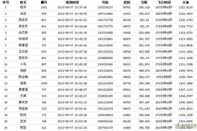 2013年9月7日汕头市金平区信鸽协会福清友谊赛