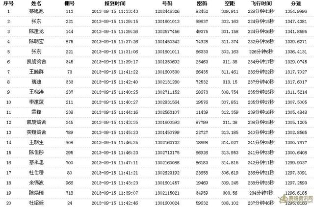 2013年9月15日汕头市澄海区泓基赛鸽俱乐部莆田站