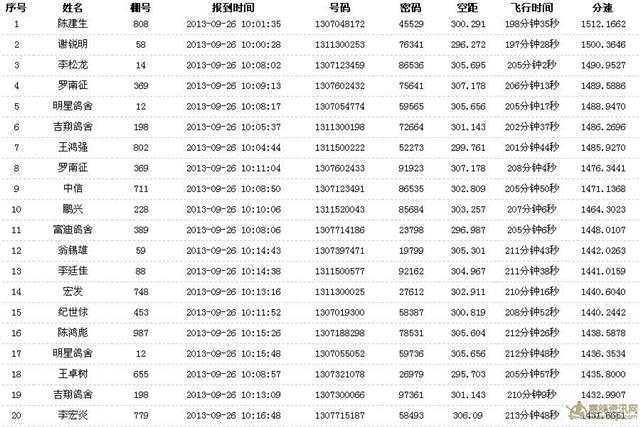 2013年9月26日汕头市金平区飞翔赛鸽俱乐部莆田站