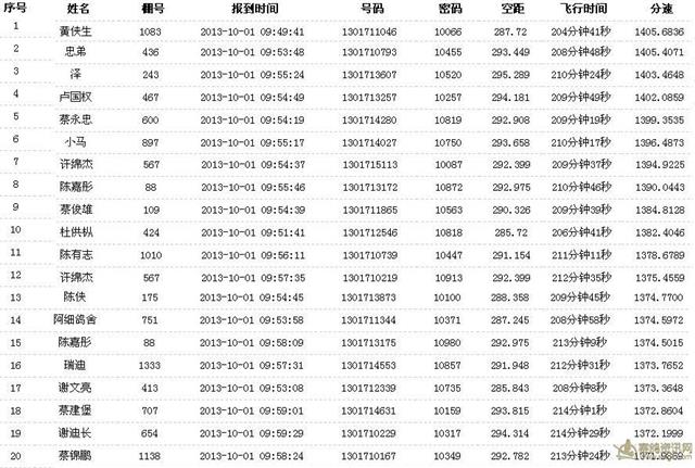 2013年10月1日汕头市金平区信鸽协会 秋 莆田站