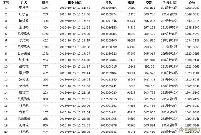 2013年10月20号汕头市信鸽协会 秋 莆田站