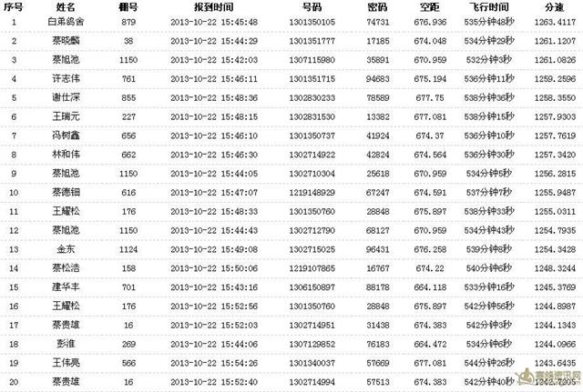 2013年10月22号汕头市澄海区赛鸽俱乐部 秋 乐清站