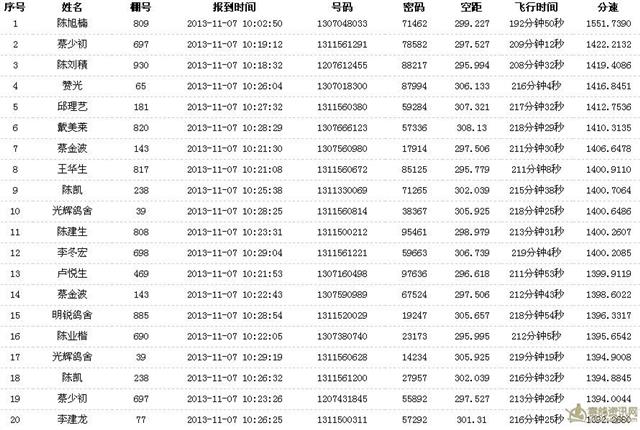 2013年11月7号汕头市金平区飞翔赛鸽俱乐部 秋冬 莆田站