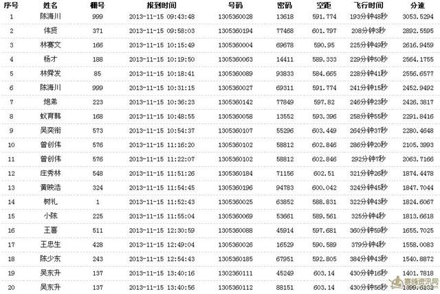 2013年11月15号汕头市樟林古港信鸽协会冬 惠安 资格赛