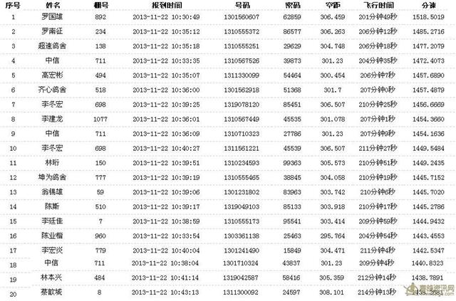 2013年11月22号汕头市搏翼赛鸽俱乐部 冬 莆田